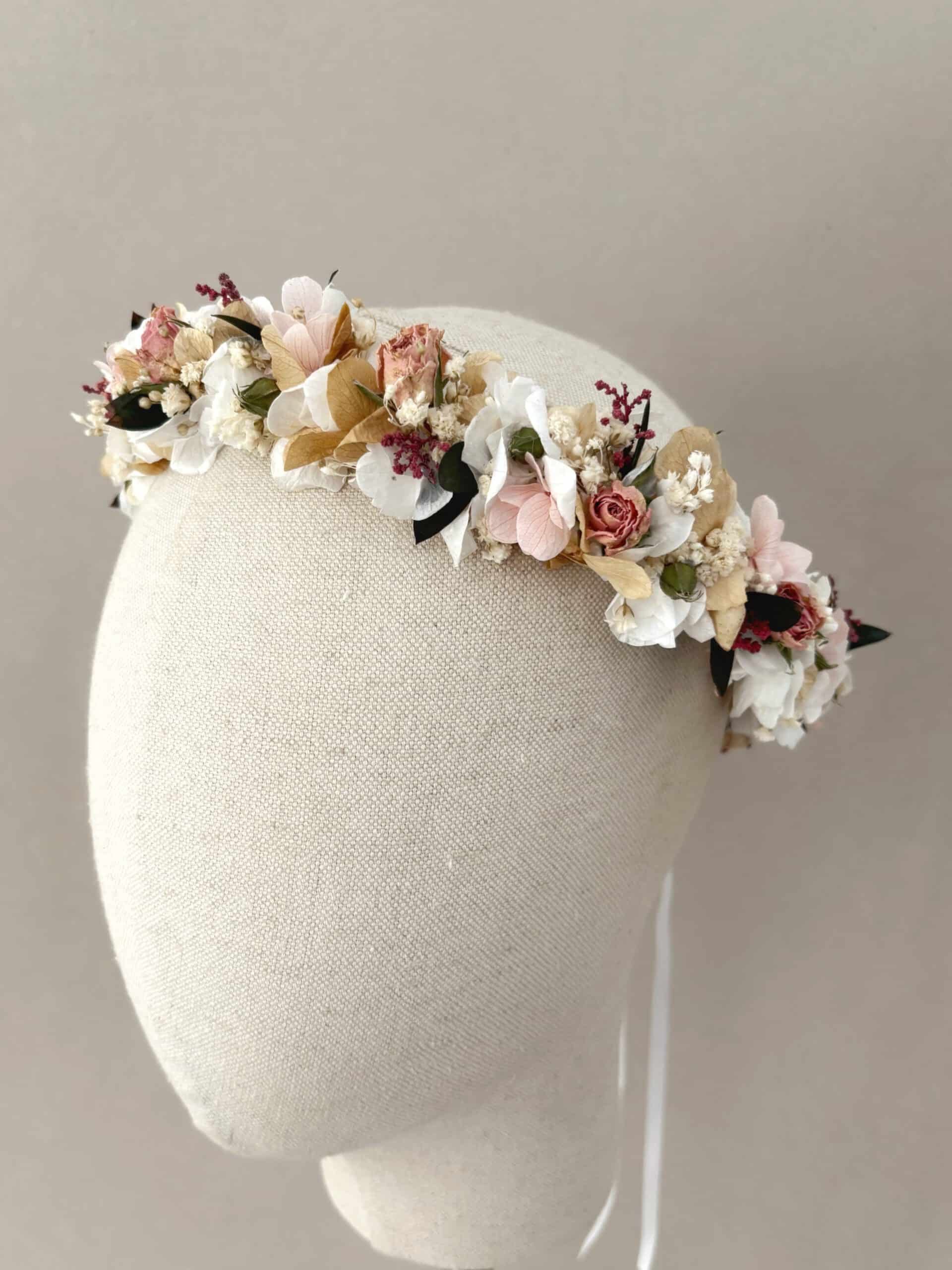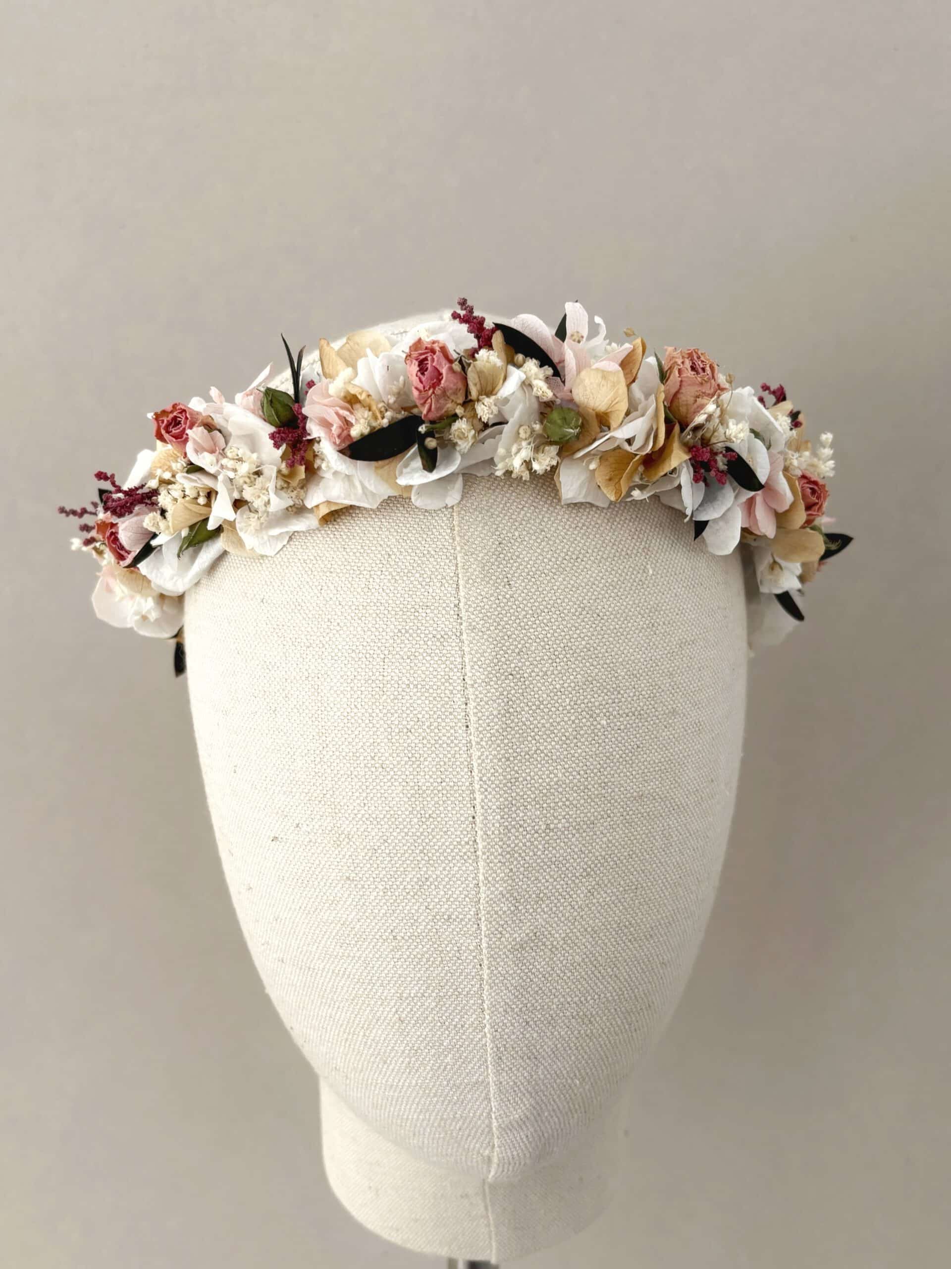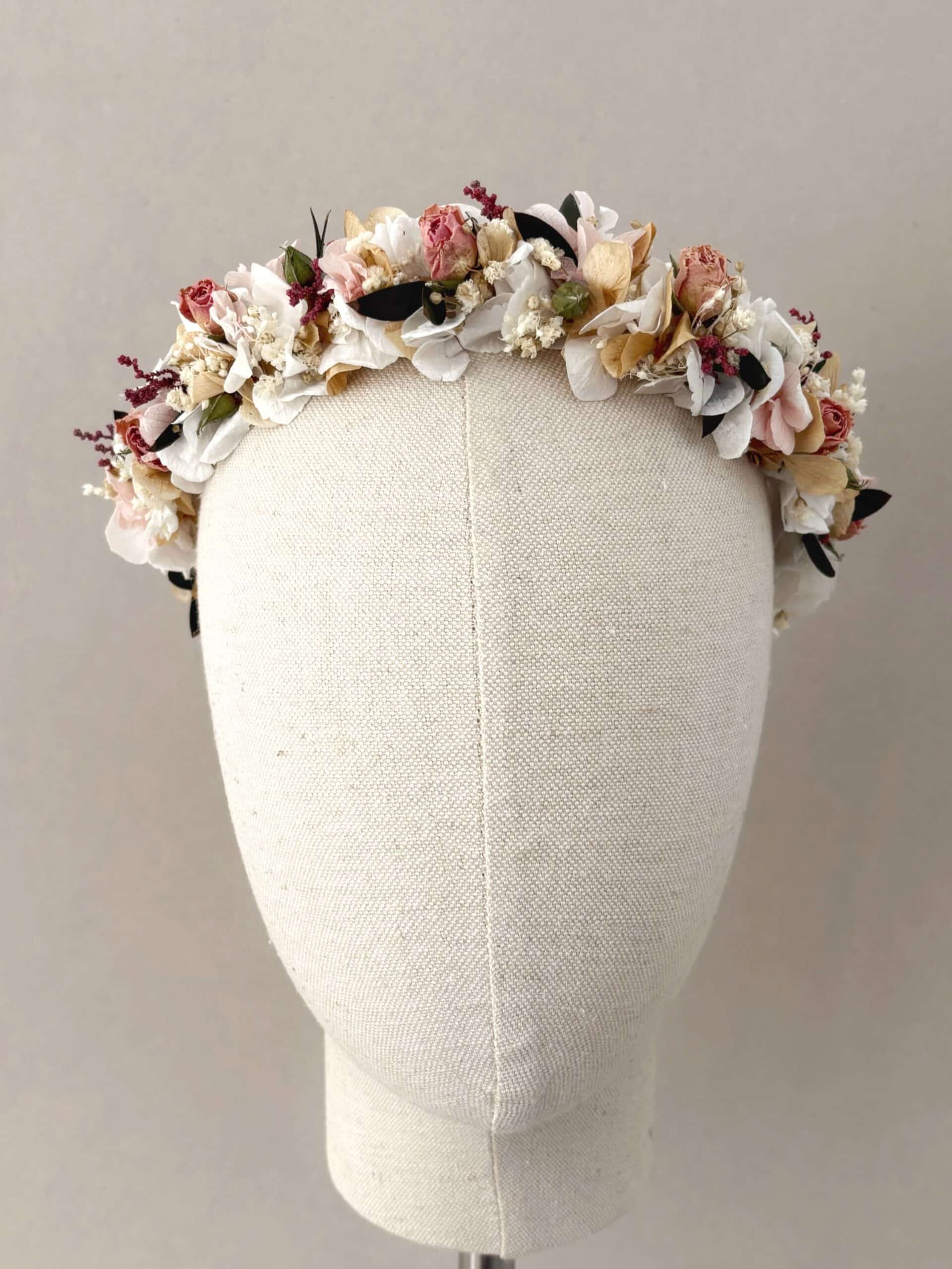 La corona de flores preservadas Azucena es ideal tanto para la Primera Comunión como para Dama de Arras. Es una corona sencilla, atemporal y llena de pequeños detalles.